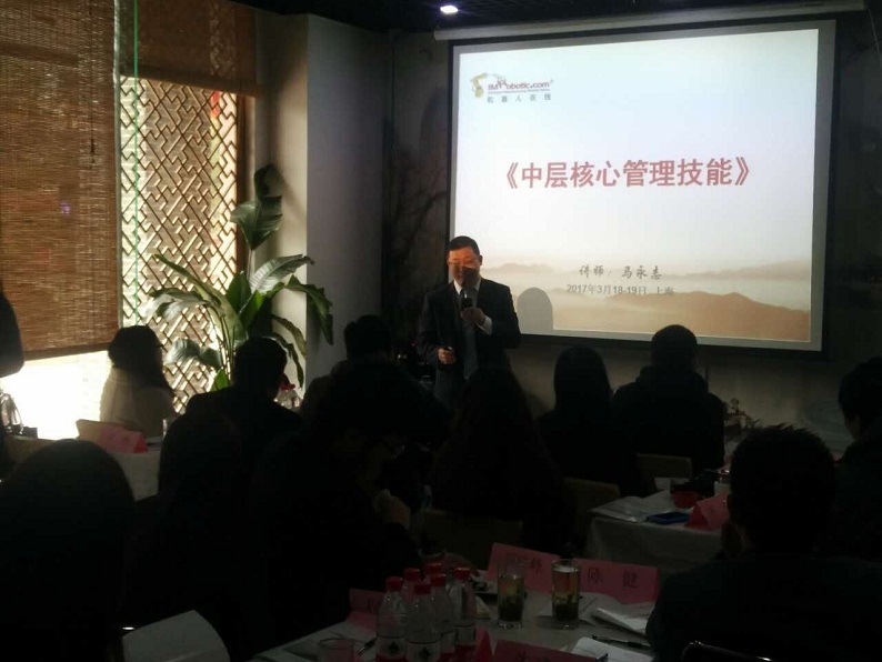 2017年3月18-19日,中國機器人行業(yè)的領(lǐng)先門戶——機器人在線公司針對公司的中高層管理者組織了一次管理課程短期培訓班——中層管理者的核心技能,影響力集團金牌講師馬永志老師為30多名中高層主管做了精彩的培訓。培訓中馬老師深入淺出地講解了1.中高層管理者角色定位認知。2.卓越管理者組織溝通與會議管理。3.目標管理的步驟與方法。4.團隊成員的選用育留策略等并結(jié)合具體案例講解團隊成員的輔導與激勵念……深入淺出、娓娓道來,在學員中間產(chǎn)生了廣泛的共鳴,贏得了在場全體學員熱烈的掌聲。