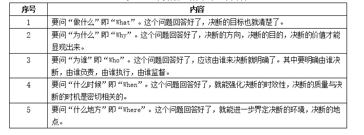 1、決斷前做好五個(gè)問答,可有效減少?zèng)Q斷的失誤。