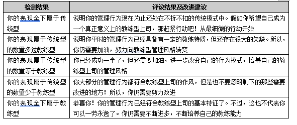| 從不給員工答案 | 喜歡給自己過(guò)去類(lèi)似成功經(jīng)驗(yàn)的答案 |